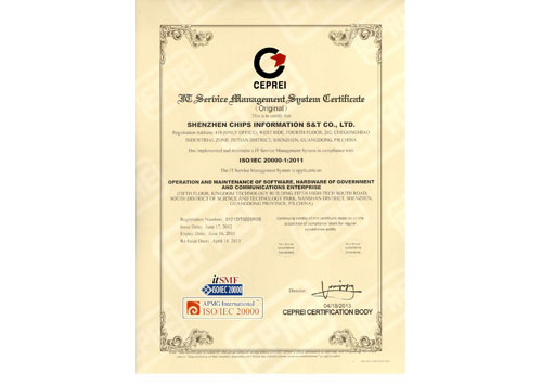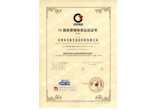 IT服務(wù)管理體系認(rèn)證證書(shū)(英文)